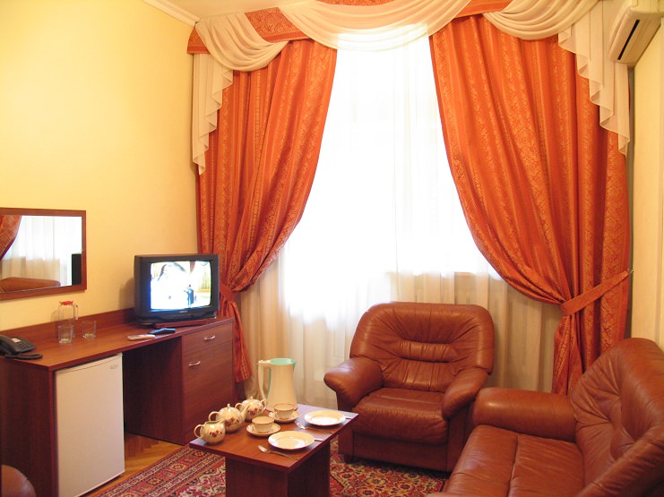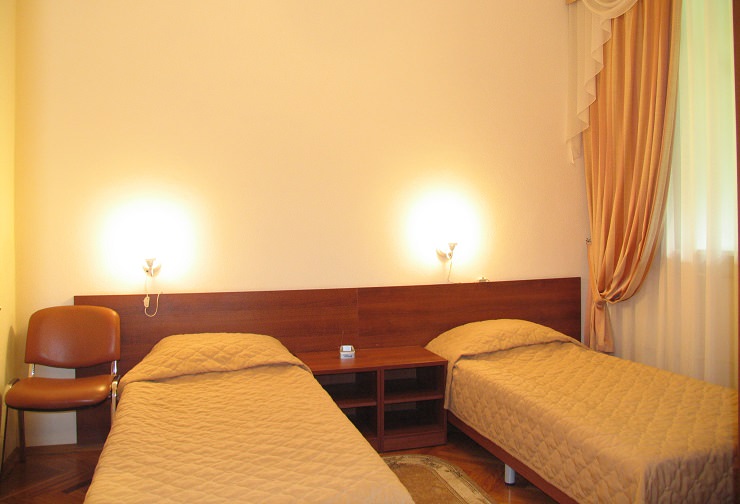 2 осн. места. 1 доп. место. Мебель: вешалка, диван, зеркало, кресла, кровати односпальные, прикроватные тумбочки, стол, столик кофейный, стул, шкаф. Оборудование: кондиционер, телевизор, холодильник. Санузел: с душем, туалетные принадлежности. Сервис: смена полотенец, смена постельного белья, уборка номера.